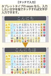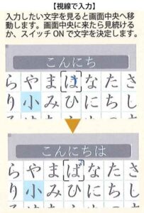 <操作方式> スイッチでの操作、視線での操作、視線とスイッチ併用での操作、タッチでの操作いずれも可能